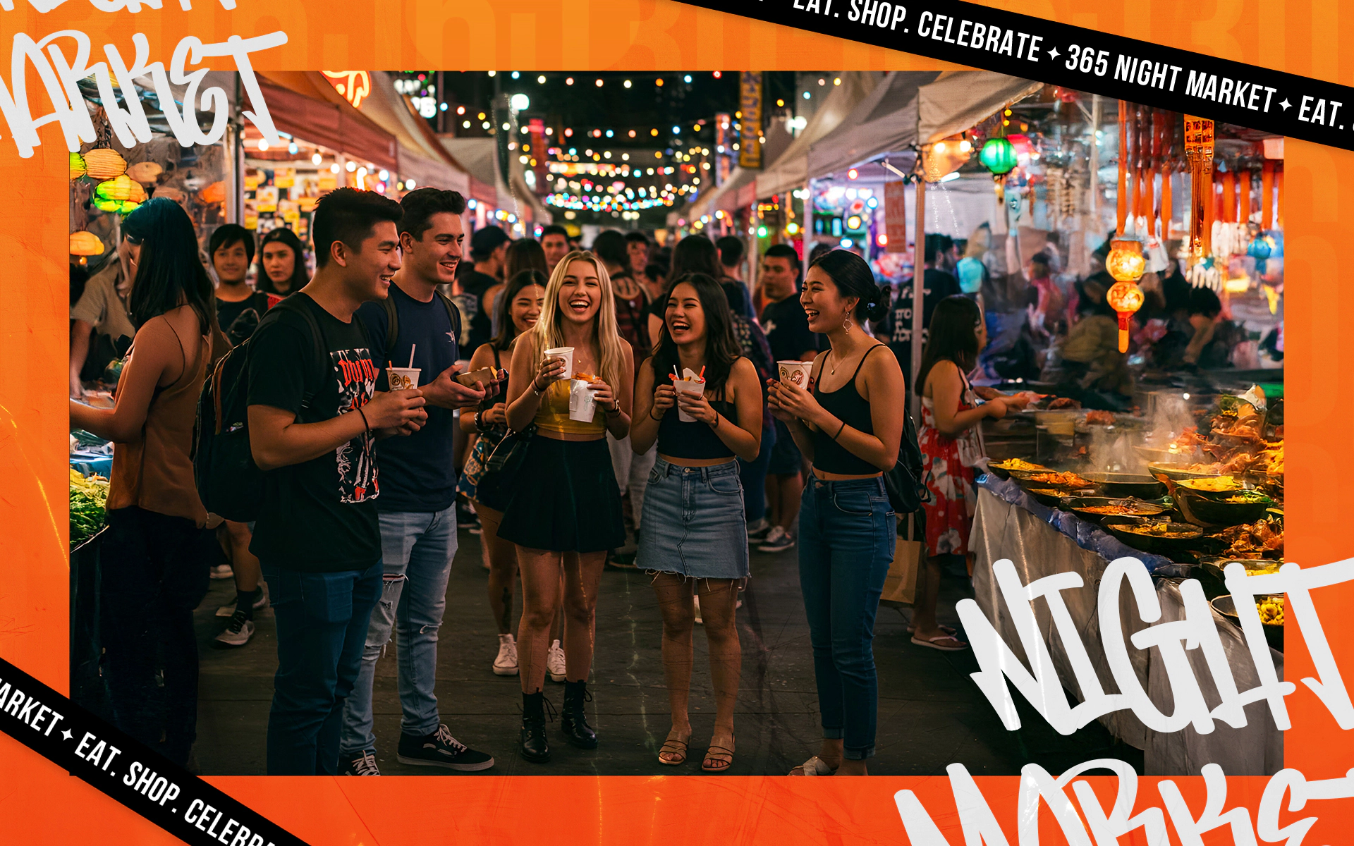 Like a gateway to a world of discovery and experiences, the logo embodies the spirit of 365 Night Market – where cultures meet, flavors blend, and every moment is unforgettable.